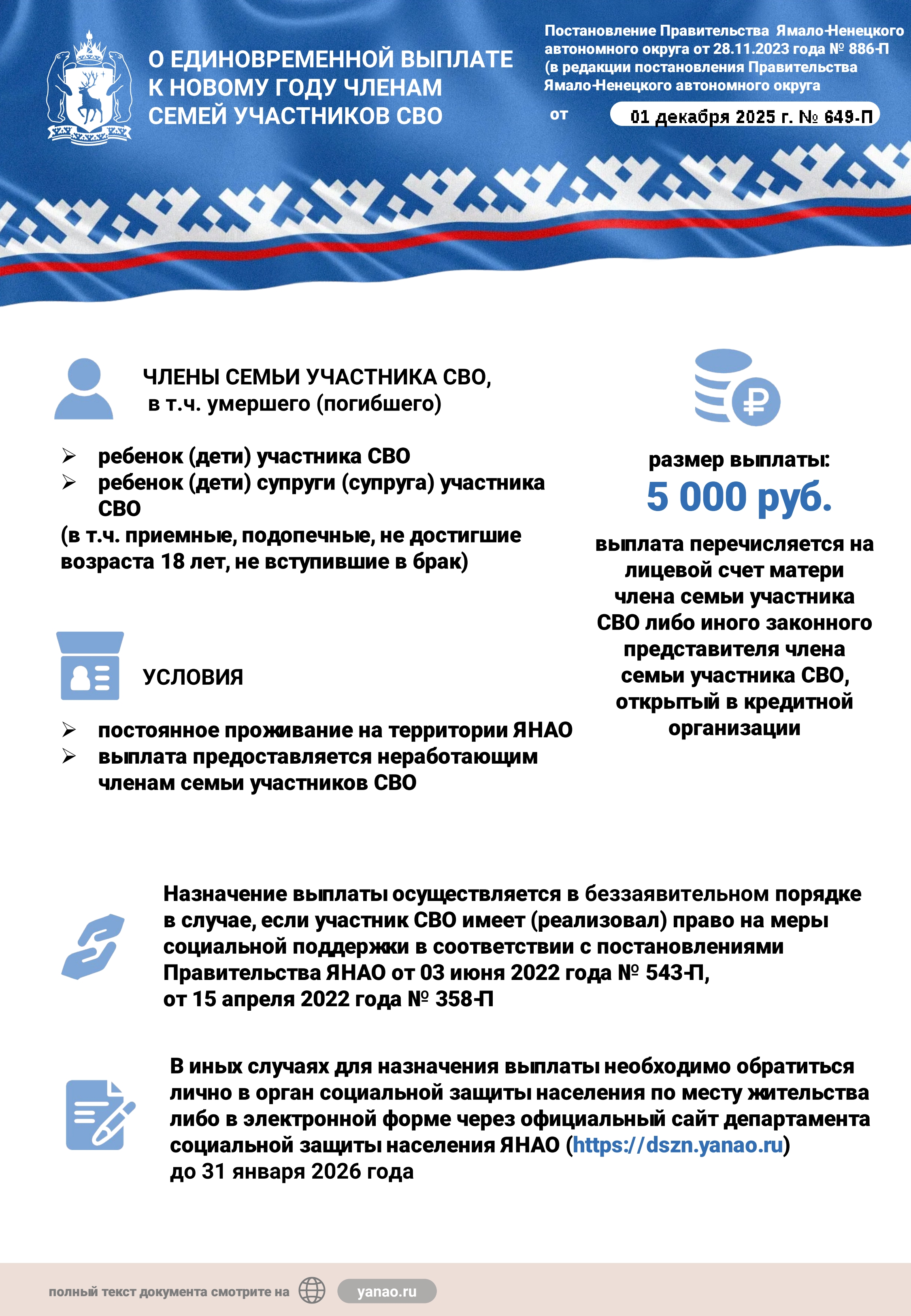 О ЕДИНОВРЕМЕННОЙ ВЫПЛАТЕ К НОВОМУ ГОДУ ЧЛЕНАМ СЕМЕЙ УЧАСТНИКОВ СВО \ 11 Декабря 2025